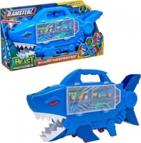 Zabawka została zaprojektowana z dbałością o detale dynamiczna forma, ruchome elementy i oryginalny motyw morskiego drapieżnika sprawiają, że każda zabawa staje się prawdziwą misją ratunkową lub szalonym wyścigiem. W zestawie znajduje się jeden samochodzik, który można wystrzelić przy pomocy wyrzutni. Transporter pomieści kilka dodatkowych pojazdów, dzięki czemu łatwo przewieźć całą kolekcję.