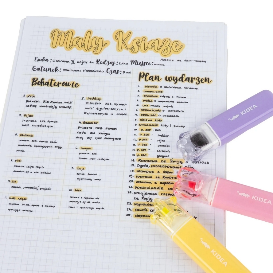 Szukasz kreatywnego zestawu do notatek i dekorowania? Ten komplet zawiera: dwa intensywne zakreślacze (różowy i żółty) oraz fioletowy roller ze stempelkami samotuszujący. Roller posiada unikatowy wzorek, dzięki czemu świetnie sprawdza się w bullet journalu, plannerach, scrapbookingu i szkolnych projektach. Zakreślacze mają nasycone, wyraziste kolory, które idealnie podkreślają tekst. To idealny zestaw dla uczniów, dzieci, studentów oraz wszystkich, którzy lubią łączyć funkcjonalność z kreatywnymi efektami.