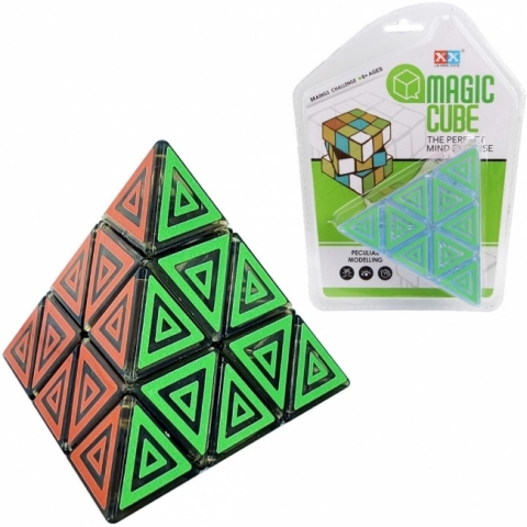 Piramida "Magic Cube" - Łamigłówka dla Geniuszy w Nowej Formie! Przedstawiamy intrygującą piramidę "Magic Cube" - idealną łamigłówkę dla miłośników wyzwań logicznych i klasycznych kostek Rubika w nowej, fascynującej odsłonie! Ten nietypowy kształt gwarantuje godziny wciągającej zabawy i doskonały trening umysłu. Cechy produktu: Unikalny Kształt Piramidy: Zamiast tradycyjnego sześcianu, ta łamigłówka ma kształt piramidy, co stanowi nowe wyzwanie dla fanów układanek. Jej konstrukcja pozwala na obracanie poszczególnych warstw, zmieniając układ kolorowych trójkątów na ściankach. Wzór Graficzny: Każdy z mniejszych trójkątów na ściankach piramidy posiada dodatkowy graficzny wzór linii (jak stylizowane litery "V" lub strzałki), które układają się w większe trójkąty. To dodaje kolejny poziom złożoności i wizualnej atrakcyjności do rozwiązania łamigłówki. Dwa Warianty Kolorystyczne: Dostępna w dwóch wariantach kolorystycznych, które można zebrać i próbować rozwiązać: o Zielono-Pomarańczowy: Z trójkątami w intensywnym zielonym i pomarańczowym kolorze na czarnym tle. o Niebiesko-Zielony (mini wersja na opakowaniu): Pokazuje inną piramidę w tonacji niebiesko-zielonej, co sugeruje różnorodność wariantów. Rozwój Umiejętności: Układanie piramidy doskonale rozwija logiczne myślenie, pamięć, koncentrację, spostrzegawczość oraz zdolności manualne i precyzję ruchów. To idealna zabawka do stymulacji pracy mózgu i treningu cierpliwości. Wyzwanie dla Wieku 6+: Produkt jest przeznaczony dla dzieci w wieku 6 lat i starszych (zgodnie z oznaczeniem "6+ AGES" oraz "BRAIN'S CHALLENGE" na opakowaniu), ale z pewnością stanowi wyzwanie i rozrywkę również dla dorosłych. Kompaktowy i Przenośny: Łamigłówka jest poręczna i łatwa do zabrania w podróż, zapewniając rozrywkę w dowolnym miejscu i czasie - idealna na długie podróże, poczekalnie czy przerwy. Atrakcyjne Opakowanie: Piramida jest zapakowana w estetyczny blister, który prezentuje jej nietypowy kształt i kolory. Na opakowaniu widnieją hasła takie jak "THE PERFECT MIND EXERCISE" oraz "PECULIAR MODELLING", podkreślające jej edukacyjny i kreatywny charakter. Wielkość opakowania: 19x14x8 cm Idealna dla: Miłośników łamigłówek, kostek logicznych i wyzwań umysłowych. Dzieci i dorosłych szukających rozwijającej i wciągającej rozrywki. Rozwijania zdolności analitycznych, cierpliwości i koncentracji. Prezentu dla każdego, kto lubi myśleć poza schematami. Podaruj sobie lub bliskiej osobie "Magic Cube" w kształcie piramidy i odkryj nowy wymiar logicznej zabawy!