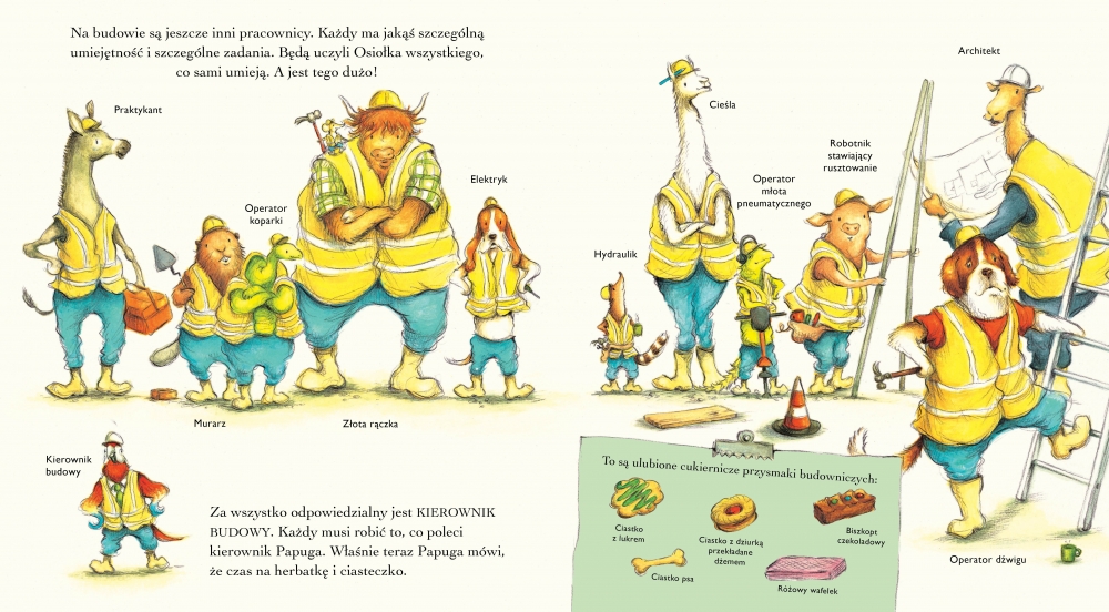 W Zwierzaczkowie na budowie pojawia się nowy praktykant – Osiołek. Będzie musiał wszystkiego się nauczyć: jak i z czego powstaje dom. Poznaje to krok po kroku.