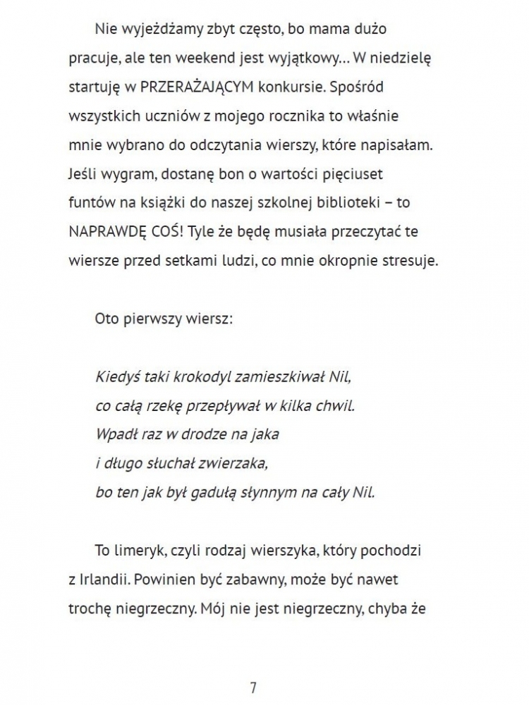 Zuzanna ma przed sobą wyjątkowy weekend: weźmie udział w konkursie poetyckim, na którym zaprezentuje swoje wiersze.