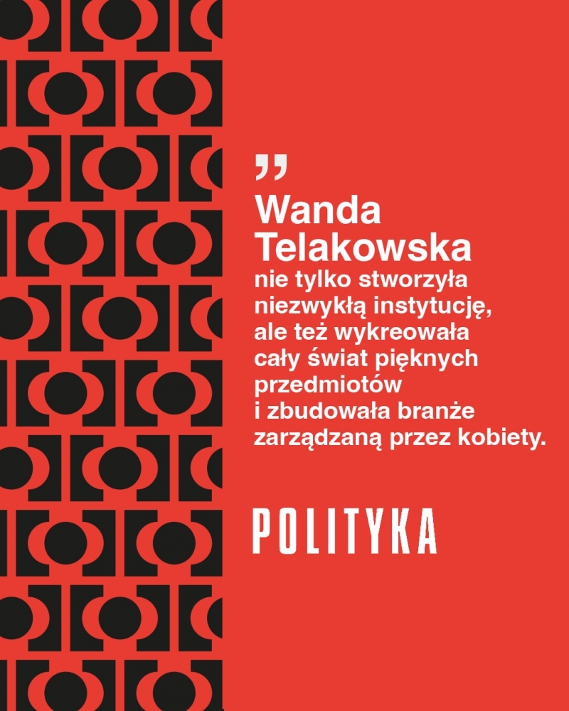 Pionierka i legenda. Najważniejsza postać polskiego wzornictwa powojennego. Jeśli istnieje „polski styl narodowy”, to jego współczesną formę ukształtowała właśnie Wanda Telakowska. To, jak dziś mieszkamy, co kupujemy i co kolekcjonujemy, zawdzięczamy założonemu przez nią w 1950 roku Instytutowi Wzornictwa Przemysłowego, który stał się ewenementem na skalę światową: kuźnią wzorów na najwyższym poziomie, matecznikiem projektantów, szkołą gustów, a przy okazji miejscem pracy na miarę XXI wieku, przyjaznym kobietom.