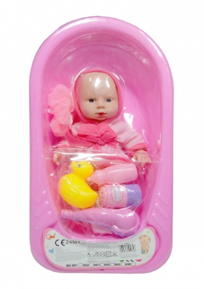 Wanna do pielęgnacji niemowlaka z lalką oraz z pozostałymi dołączonymi akcesoriami jak: szampon, puder, butelka, kaczuszka. Zabawka rozwija u dziecka opiekuńczość, troskę o drugą osobę.