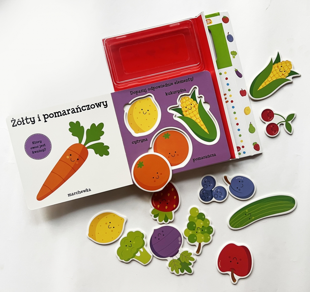 Szukasz idealnego pierwszego prezentu edukacyjnego dla swojego malucha? Poznajemy świat: Warzywa i Owoce to wyjątkowy zestaw, który łączy naukę z interaktywną zabawą. To coś więcej niż zwykła książka. Dzięki 12 wyjmowanym elementom w kształcie owoców i warzyw, nauka staje się angażującą przygodą. Twoje dziecko będzie z radością odkrywać nowe słowa, dopasowując kolorowe elementy do obrazków na stronach.