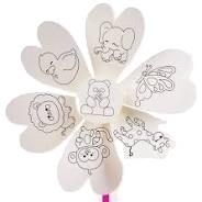 papierowy wiatraczek z szablonem do malowania, 6 końcówek, centralne koło, patyczek, całkowita długość złożonego wiatraczka 38,5 cm