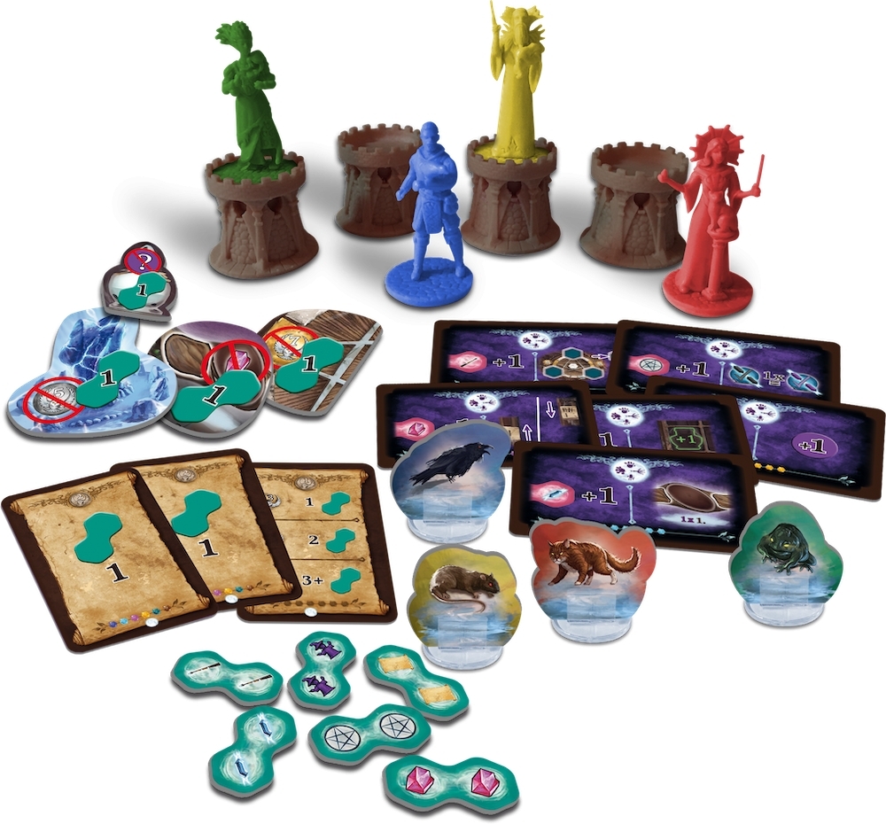 - Arcymistrzów, którzy zastępują duże figurki wiedźm z gry podstawowej. Duże wiedźmy możemy usunąć lub przyjąć dla ich użycia nową, specjalną zasadę opisaną w instrukcji.