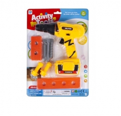 Plastikowa wiertarka z akcesoriami będzie wspaniałą zabawką dla każdego małego majsterkowicza.