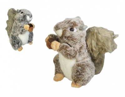 Pluszowa wiewiórka trzymająca orzeszka. Miękka maskotka o realistycznym wyglądzie, idealna do przytulania i zabawy. Podane wymiary są wymiarami maskotki.