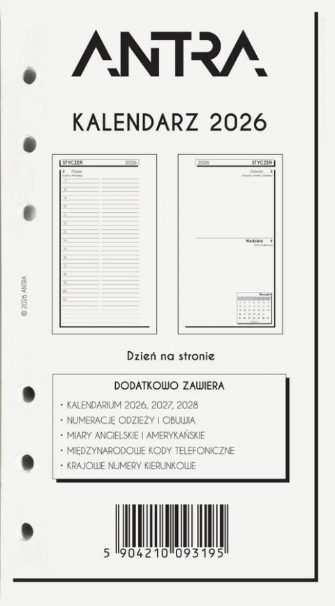 Wkład kalendarzowy 2026 B6 DNS (dzień na stronie, białe kartki)