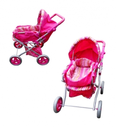 Metalowy wózek do składania w różowym kolorze w kolorowe paski.