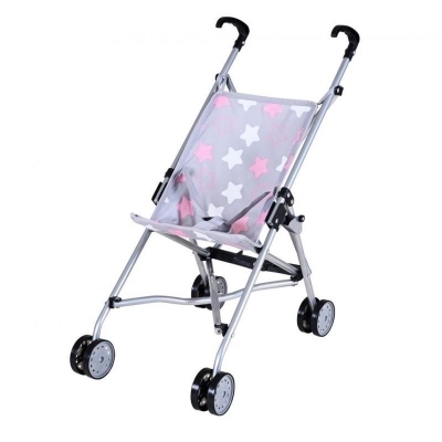 Wózek dla lalek spacerówka KnorrToys Sim 12644 Nowoczesna i praktyczna spacerówka KnorrToys 12644 została zaprojektowana specjalnie dla dzieci w wieku od 3 lat. Optymalne wymiary sprawiają, że model z serii Sim jest idealnym środkiem transportu dla lalek o wysokości do 37 cm. Niemiecki producent jest znany z dbałości najwyższą jakość i bezpieczeństwo maluchów. Bez wątpienia zwraca uwagę modna, szaro - różowa kolorystyka i uroczy wzór w gwiazdki. Dzięki zastosowaniu praktycznych pasów bezpieczeństwa zabawka zawsze pozostanie na swoim miejscu. Co więcej, lekką, ważącą około 1 kg spacerówkę można z łatwością złożyć i przetransportować. Wózek spacerówka KnorrToys Sim 12644 idealnym dodatkiem do każdej kolekcji lalek Każda dziewczynka marzy o tym, by naśladować dorosłych i dbać o swoją lalkę tak, jak prawdziwa mama. Dlatego też wózek 12644 to absolutny must-have. Popularna stylizacja rozbudza wyobraźnię i kreatywność a także uczy małą opiekunkę odpowiedzialności. Wiek: 3+ Przeznaczony dla lalek: do 37 cm Wysokość uchwytu: 55 cm Wymiary wózka: 42 cm x 27 cm x 55 cm