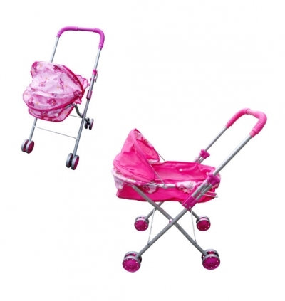 Metalowy wózek do składania w różowym kolorze w kwiatowe wzorki/ i misie.