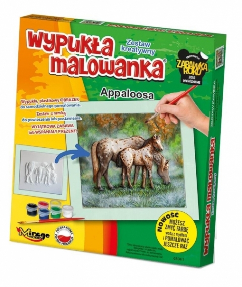 Wypukła Malowanka to zestaw kreatywny do malowania dla osób powyżej 5. roku życia. Zestaw zawiera wypukły, plastikowy, kształtny obrazek 3D, farbki akrylowe, pędzelek oraz ramkę z kartonu do postawienia lub powieszenia. Zmyj obrazek przy użyciu ciepłej wody, mydła i szczoteczki, najpóźniej do 15 min. po pomalowaniu. Obrazek ma odpowiedni do wzoru wypukły kształt 3D, który jest dobrze odczuwalny w dotyku. Produkt wyprodukowany w Polsce!