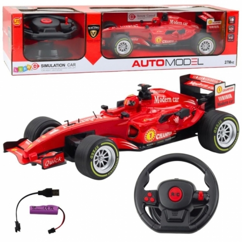 ZDALNIE STEROWANA WYŚCIGÓWKA RC 1:12 - ŚWIATŁA, DŹWIĘKI, KIEROWNICA PILOTA, PEŁEN ZAKRES RUCHÓW Zdalnie sterowany bolid wyścigowy w skali 1:12 to efektowna i dynamiczna zabawka, stworzona z myślą o wszystkich miłośnikach motoryzacji, wyścigów i emocjonującej zabawy RC. Model zachwyca realistycznym wyglądem inspirowanym bolidami Formuły, aerodynamiczną linią oraz wysoką jakością wykonania. To pojazd, który łączy sportowy design z nowoczesną technologią, oferując wiele godzin ekscytującej zabawy - zarówno w domu, jak i na zewnątrz. Pojazd sterowany jest za pomocą pilota w formie kierownicy, co pozwala dziecku poczuć się jak prawdziwy kierowca wyścigowy. Intuicyjne sterowanie umożliwia jazdę w czterech kierunkach: do przodu, do tyłu, skręty w lewo i prawo - co daje pełną kontrolę nad ruchem pojazdu i pozwala precyzyjnie manewrować, nawet w trudniejszym terenie. Duży atut stanowią efekty świetlne i dźwiękowe, które są aktywowane podczas jazdy - światła pozycyjne i realistyczne odgłosy silnika dodają zabawie zupełnie nowego wymiaru. Cały zestaw zapakowany jest w duże, estetyczne opakowanie z przezroczystym frontem, które eksponuje pojazd i jego szczegóły już na etapie prezentacji - idealne rozwiązanie, jeśli szukasz atrakcyjnego i gotowego do wręczenia prezentu. SPECYFIKACJA: Wymiary samochodu: 37 x 15 x 10 cm Wymiary opakowania: 60,5 x 20,5 x 15,5 cm Skala: 1:12 Częstotliwość: 27 MHz Zasilanie pojazdu: Akumulator 4.8V Li (w zestawie) Zasilanie pilota: 2x AA 1.5V (brak w zestawie) Efekty: Świetlne i dźwiękowe Funkcje: Przód / tył / lewo / prawo Materiał: Tworzywo sztuczne ZAWARTOŚĆ ZESTAWU: Wyścigówka RC Pilot w formie kierownicy Akumulator 4.8V Li Kabel USB Instrukcja