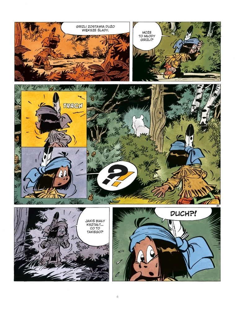 Yakari wie, że białe niedźwiedzie żyją tylko na dalekiej Północy, więc kiedy pewnego wieczoru widzi w lesie to zwierzę, ucieka w przerażeniu, bo jest pewien, że spotkał ducha! Następnego dnia zbiera się na odwagę i wraca do lasu, aby wyjaśnić sprawę. Tak rozpoczyna się kolejna niezwykła przygoda, podczas której chłopiec spróbuje poznać prawdę o białej zjawie, a potem postara się uzyskać pomoc nocnych zwierząt, żeby przechytrzyć szalonego łowcę futer.