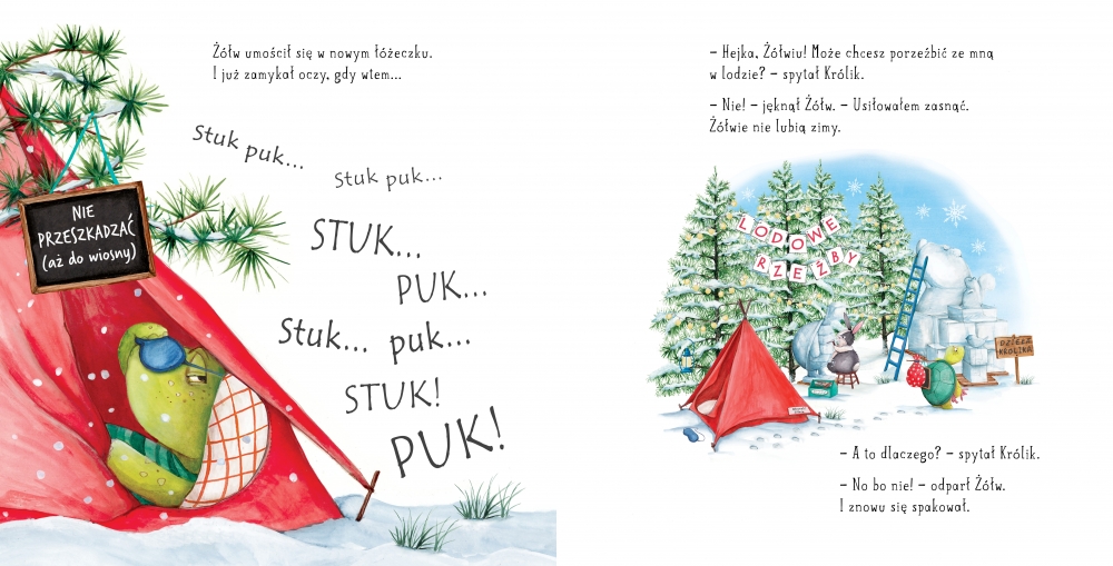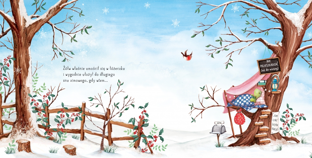 Dlaczego? – No bo nie – odpowiada. Ale tak naprawdę to dlatego, że jej nie zna, bo wtedy zapada w zimowy sen. Królik, Wiewiórka i Bóbr cieszą się zimą i hałasują tak bardzo, że ciągle go budzą.