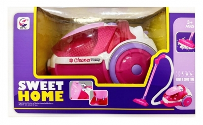 Odkurzacz zabawkowy w kolorze różowym z rurą i ssawką. Świeci kolorowym światełkiem. Zabawka działa na baterie AAA. Baterie nie są załączone do zabawki. Zabawka przeznaczona dla dzieci od lat 3. Zabawka zapakowana w kartonowe pudełko. Podane wymiary są wymiarami opakowania.