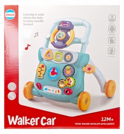 Chodzik interaktywny z panelem muzycznym i kolorowymi elementami do zabawy. Pomaga w nauce chodzenia, posiada dźwięki i melodie. Posiada uchwyt antypoślizgowy. Zabawka działa na baterie AA. Baterie nie są załączone do zabawki. Produkt zapakowany w kartonowe pudełko. Podane wymiary są wymiarami opakowania. Zabawka przeznaczona dla dzieci od 12 miesiąca życia.