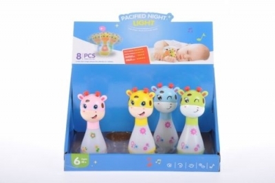 Zalety produktu: posiada efekty dźwiękowe oraz świetlne, spokojna melodia uspokaja i odpręża niemowlaka, występuje w 4 wersjach kolorystycznych. Fajna propozycja dla malucha lubiącego zasypiać przy uspokajających melodiach. Kolorowa Żyrafka gra kojące melodie oraz świeci delikatnym światłem.
