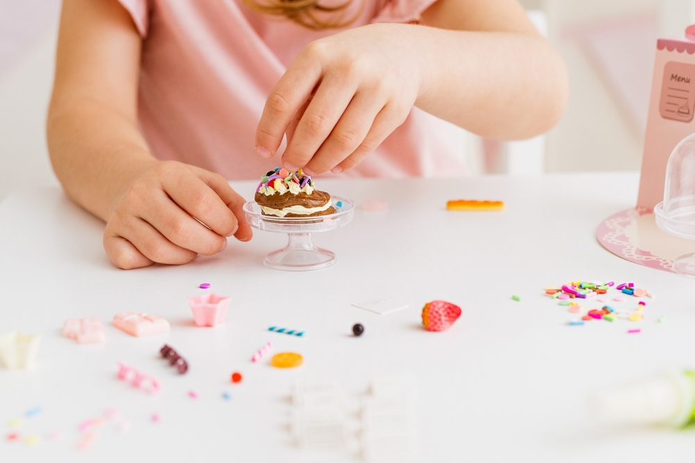 - po udekorowaniu zabawkowych deserów, pozostaw je, aby stwardniały, najlepiej na całą dobę;
