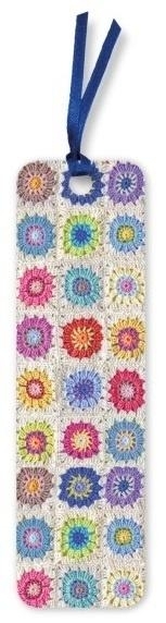 Pozłacana, papierowa zakładka do książki z ozdobną wstążką.