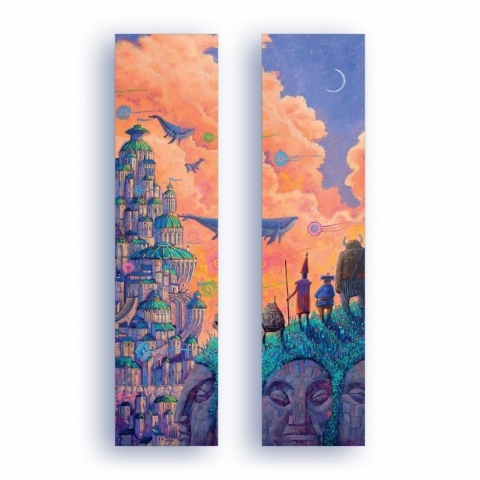 Wyjątkowy obraz Rocha Urbaniaka inspirowany popkulturą! Karton ozdobny perłowy 300g, sztywny, metaliczno-srebrny połysk Wymiary: 50x200mm