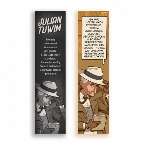 Zanurz się w świecie literatury z naszym unikalną zakładką z cytatami od jednego z największych polskich poetów, Juliana Tuwima. Karton ozdobny perłowy 300g, sztywny, metaliczno-srebrny połysk Wymiary: 50x200mm