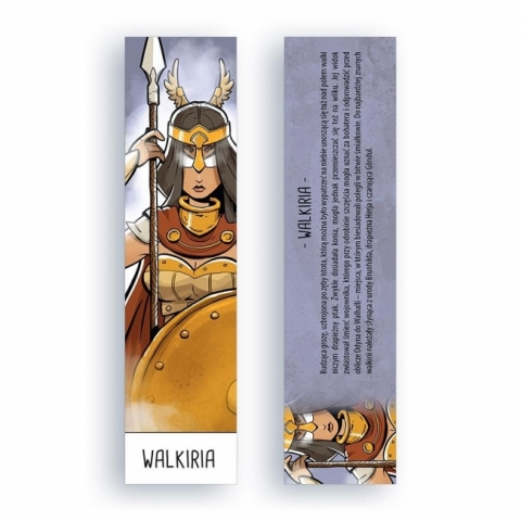 Widok Walkirii zwykle zwiastował rychłą śmierć wojownika, ale Ty nie masz się czego obawiać. Choć na co dzień pewnie toczysz różnego rodzaju boje, nasza zakładka z Walkirią będzie raczej zwiastunem jeszcze przyjemniejszej lektury. Możesz używać jej nie tylko podczas czytania książek o wielkich bitwach. Karton ozdobny perłowy 300g, sztywny, metaliczno-srebrny połysk Wymiary: 50x200mm