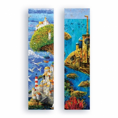 Zakładka do książek, która zatrzyma dla Ciebie czas i pozwoli wrócić do niego w każdej chwili. Wyjątkowe obrazy Rocha Urbaniaka! Karton ozdobny perłowy 300g, sztywny, metaliczno-srebrny połysk Wymiary: 50x200mm