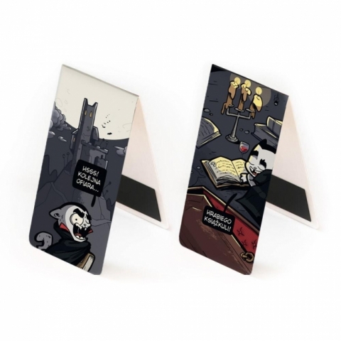 Wysysasz z książek treść aż do ostatniej literki? Prawdopodobnie jesteś wampirem książkowym! Znamy takich, jak Ty i dobrze wiemy, czego Ci potrzeba - nowe zakładki! Zaokrąglone rogi, papier kreda 350 g, folia zabezpieczająca błysk, folia magnetyczna na kawałku zakładki Wymiary: 50x200mm po rozłożeniu, 50100 mm po złożeniu