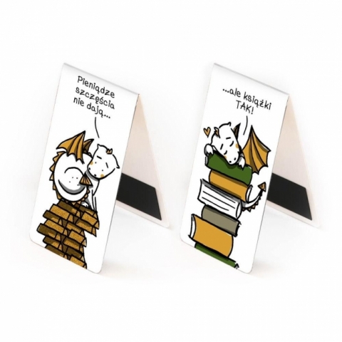 Ta zakładka będzie idealnym podsumowaniem życiowych priorytetów. Sprawdzi się w roli upominku i to zarówno dla centusiów, jak i dla osób, które z chęcią idą po wypłacie do księgarni, żeby kupić nową książkę... albo dziesięć. Zaokrąglone rogi, papier kreda 350 g, folia zabezpieczająca błysk, folia magnetyczna na kawałku zakładki