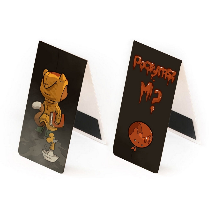 Specyfikacja: Zaokrąglone rogi, papier kreda 350 g, folia zabezpieczająca błysk, folia magnetyczna na kawałku zakładki
