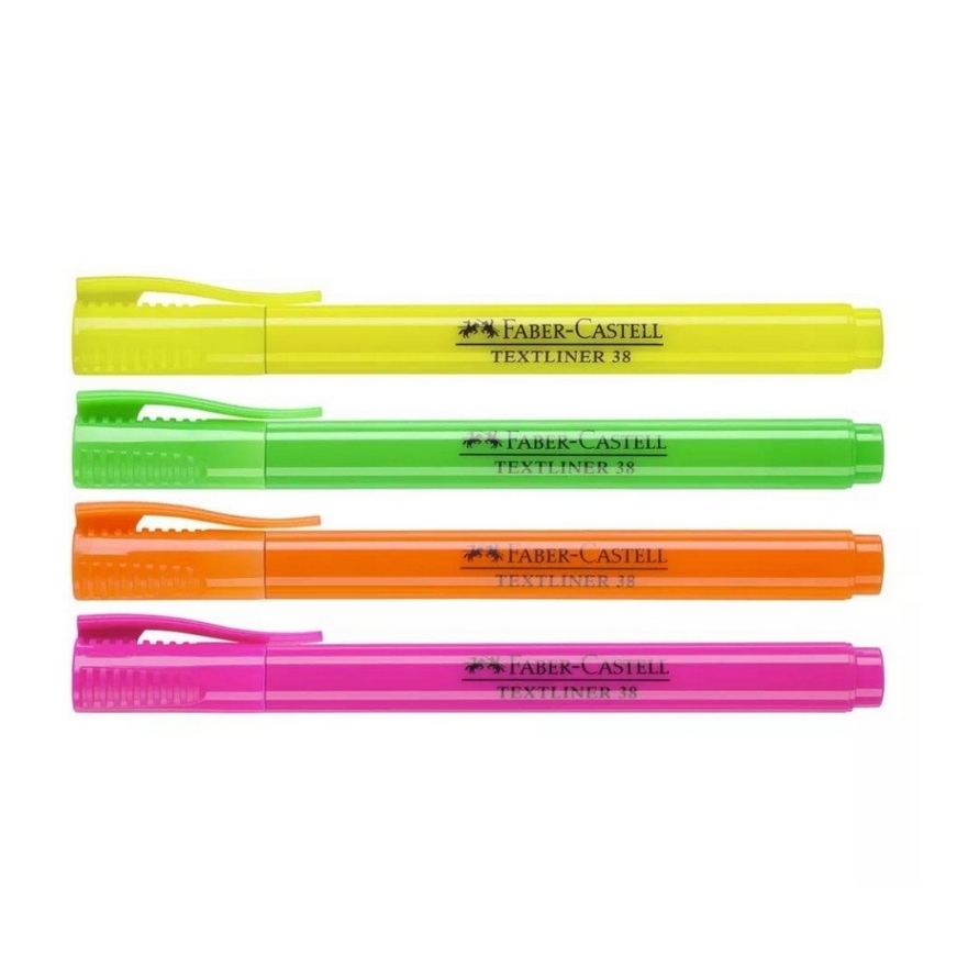 - Zakreślacz 38 w 4 kolorach (różowy, żółty, pomarańczowy, zielony) od Faber-Castell.