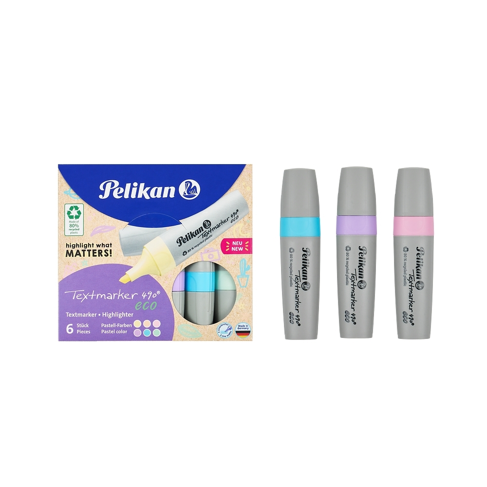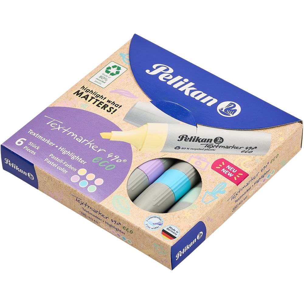 Zakreślacze Pelikan 490, 6 kolorów - Eco Pastel