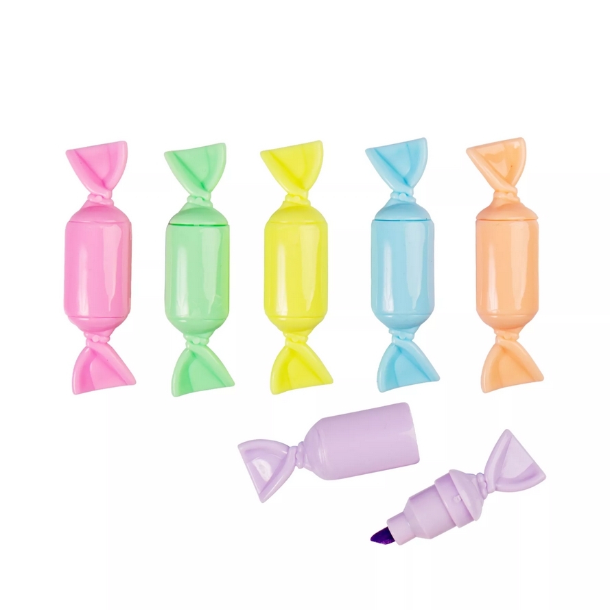 Zestaw zawiera 6 zakreślaczy w kształcie cukierków.