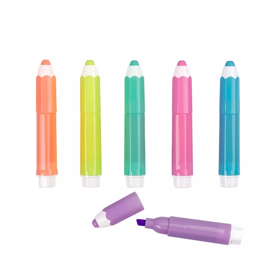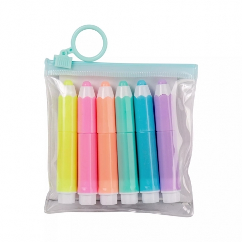 Zestaw zawiera 6 zakreślaczy w kształcie kredek.