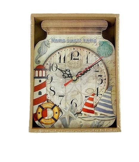 Zegar z morskim wzorem, 1xAA; 17,5x13x9cm; Box.