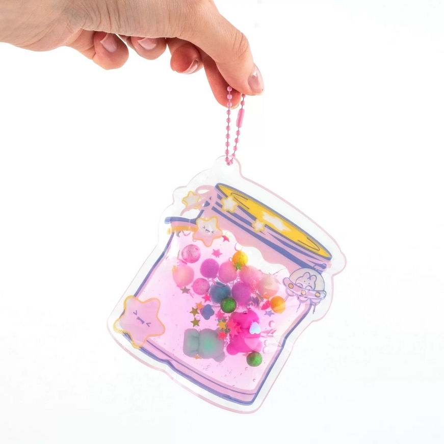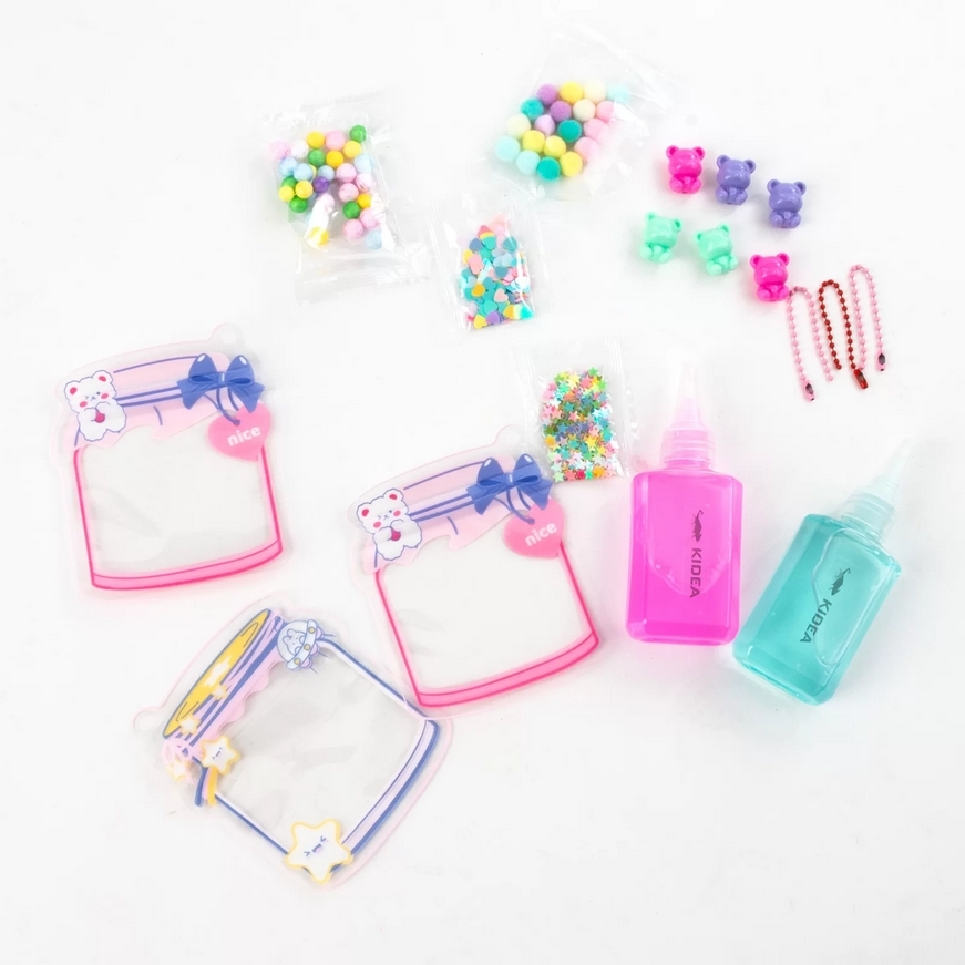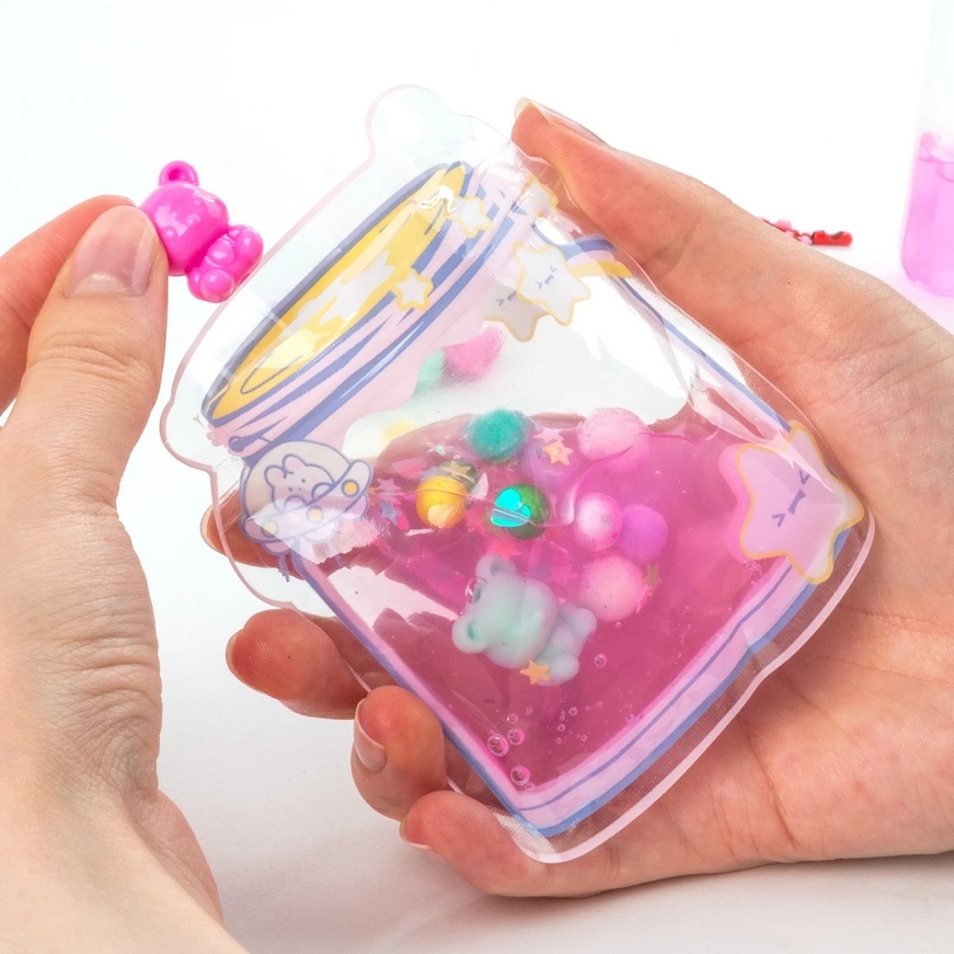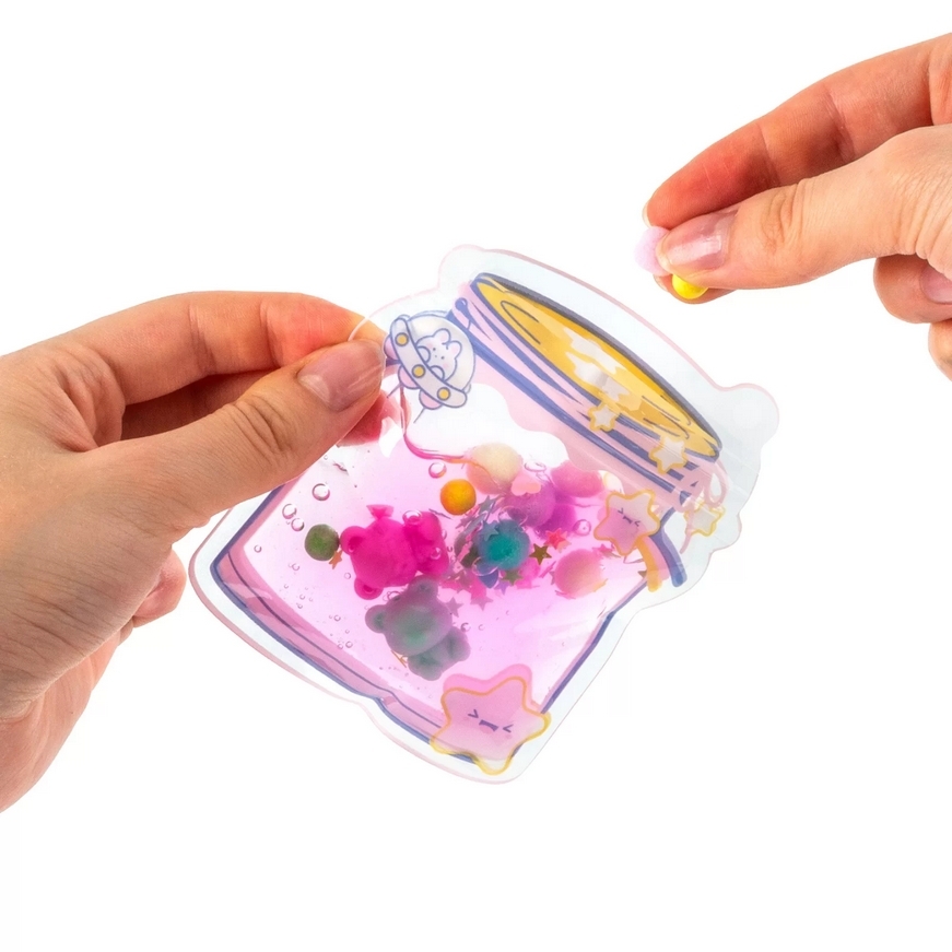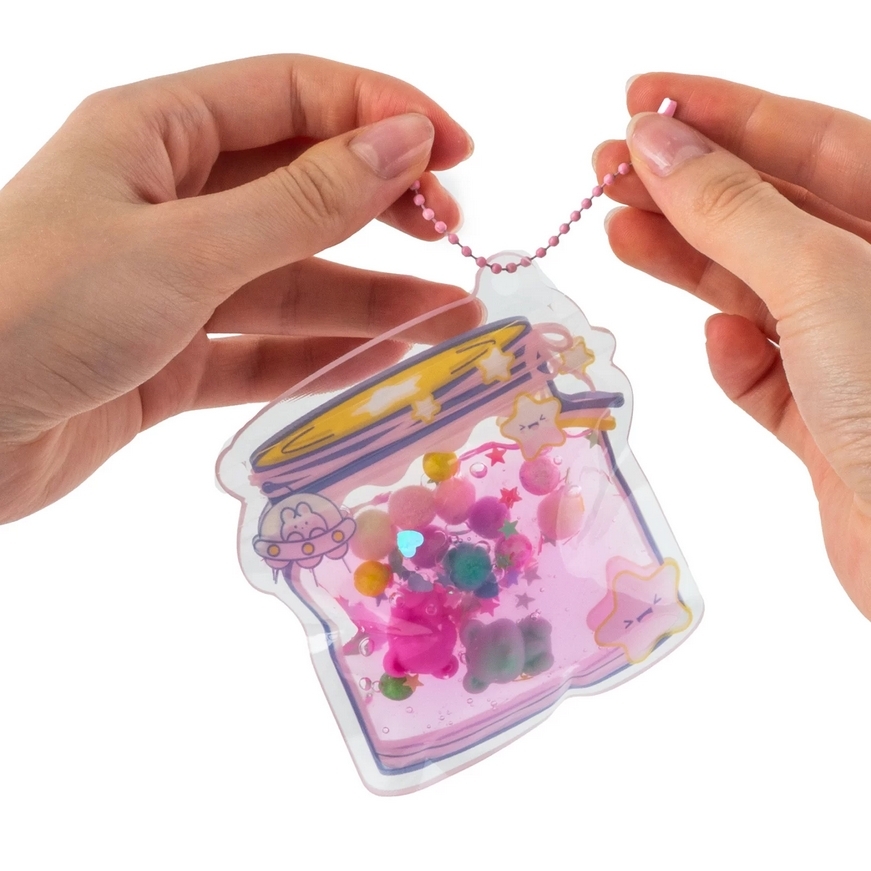 Twórz swoje małe dzieła sztuki w wersji kieszonkowej! Napełnij woreczek specjalnym żelem i dopełnij dołączonymi akcesoriami takimi jak cekiny, kuleczki, misie oraz pomponiki. Powstały breloczek to nie tylko oryginalna ozdoba, ale i świetny gadżet antystresowy o żelowej konsystencji. Zestaw zawiera trzy torebki zamykane na strunę, dwa pojemniki żelu o pojemności 60ml każdy oraz bogaty zestaw ozdób. Zawieś gotowy woreczek na łańcuszkach przy plecaku, kluczach czy torebce i ciesz się nimi przez cały dzień!