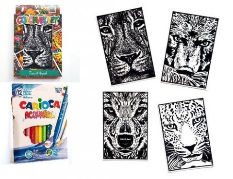 Zestaw 4 Kolorowanek Welwetowych + 12 Flamastrów Carioca - Drapieżniki