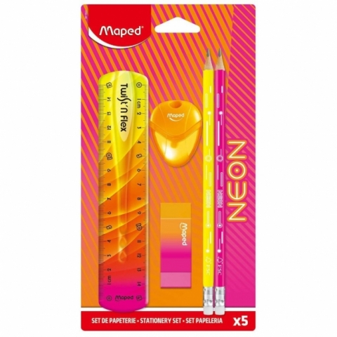 Zestaw artukułów szkolnych z kolekcji Neon.