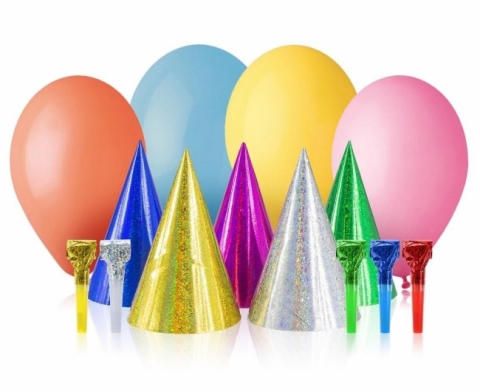 10 holograficznych czapeczek i 10 holograficznych trąbek.