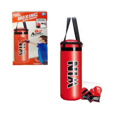 Świetny zestaw dla małego boksera. Zestaw zapewnia trening siłowo-kondycyjny oraz jest doskonałym sposobem na wyładowanie emocji i super zabawę. Zestaw zawiera elektryczny worek bokserski i rękawice. Podczas uderzania worek wydaje dźwięki (8 różnych odgłosów). Zabawka zapakowana w kartonowe opakowanie.