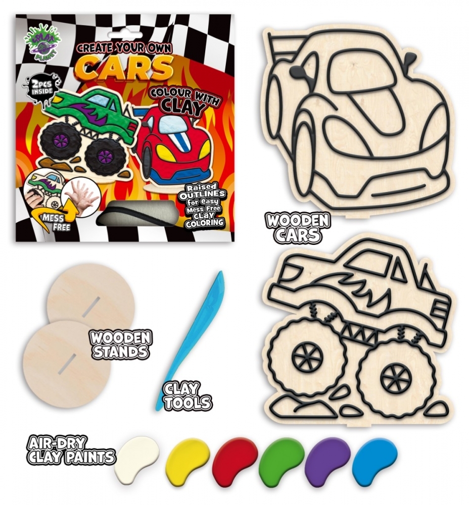 Zestaw do kolorowania plasteliną na drewnie - auta