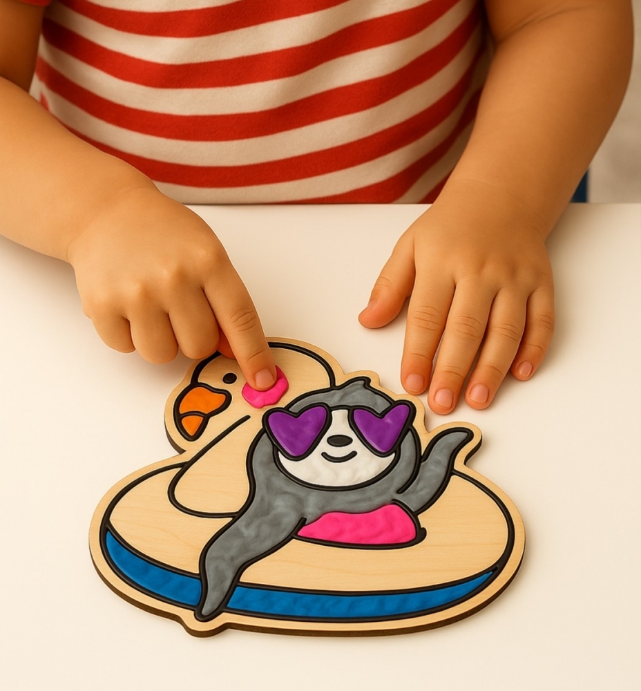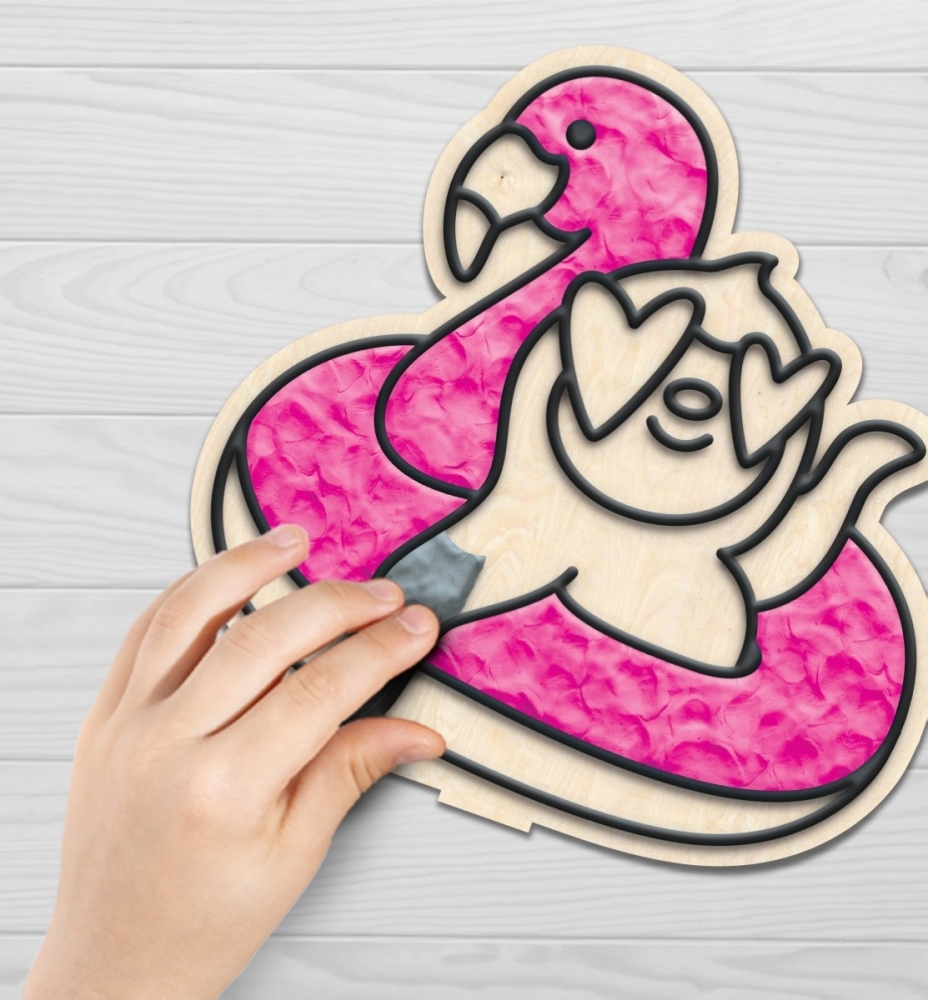 - Zestawy do kolorowania z plasteliny na drewnianych szablonach z trójwymiarowym efektem.