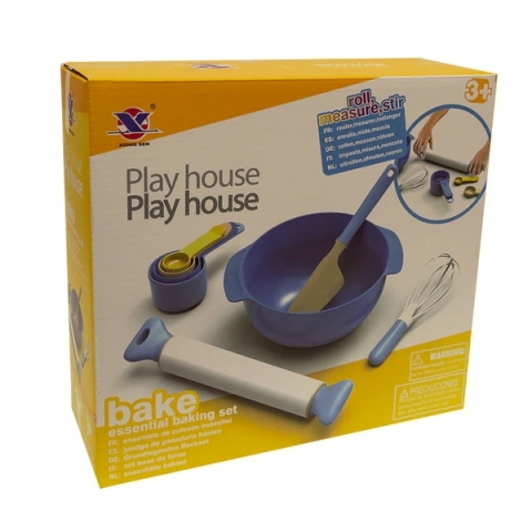 W zestawie znajduje się miska z uchwytami, wałek do ciasta, trzepaczka, łopatka do mieszania oraz 4 miarki o różnej pojemności. Dzięki temu dziecko może spróbować swoich sił w odmierzaniu, mieszaniu i wałkowaniu – dokładnie tak jak w prawdziwej kuchni!