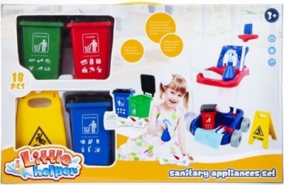 Zalety produktu: Zestaw 18 elementowy do sprzątania, sortowania śmieci i odpadów który nauczy dzieci dbania o porządek, świetnie się przy tym bawiąc. Zawiera on m innymi 3 x kosze do segregacji śmieci, szufelkę z drążkiem, zmiotkę oraz łopatkę, MOP z kijkiem, Wszystko utrzymane w żywych kolorach Możność użycia: w domu, na zewnątrz, w podróży Zalety rozwojowe: rozwija wyobraźnię, ćwiczy precyzję ruchowe, uczy naśladowania czynności wykonywanych przez dorosłych i inspiruje do eksperymentowania Produkt nie wymaga baterii Produkt zapakowany w karton. Wymiary produktu w opakowaniu( dł. x wys. x gł.){cm} 51x32,5x16 Waga produktu w opakowaniu{kg.} 1,53kg.Produkt przeznaczony dla dzieci w wieku 3+