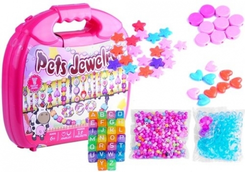 Zestaw do własnoręcznego tworzenia bransoletek DIYDIY, czyli zrób to sam, oznacza samodzielne wykonywanie różnych prac na własne potrzeby. Może dzięki takiej zabawie Twoja córeczka znajdzie oryginalne hobby, pozwalające się jej stale rozwijać? Ten zestaw zapakowany w uroczą walizkę może być spełnieniem marzeń każdej dziewczynki. Jeśli Twoja córka lubi kreatywne zabawy, a jej głowa jest pełna ciekawych pomysłów ? nie czekaj długo, tylko wybierz ten produkt. Zestaw zawiera w sobie wszystko, co jest potrzebne do stworzenia zaprojektowanej przez dziecko bransoletki w piętnastu różnych konfiguracjach.Poręczny zestaw bajecznie kolorowych koralików zaspokoi gusta każdej modnisi, lubiącej oryginalne dodatki. Jesteśmy pewni, że prezentowany zestaw koraliczków w połączeniu z żyłką w sprawnych rączkach Twojej małej projektantki w mig zamieni się w wystrzałową, niebanalną biżuterię. Według zastrzeżeń producenta zabawka jest przeznaczona dla wszystkich dziewczynek, które ukończyły 3. rok życia. Ze względu na mnogość elementów o małych rozmiarach, należy pilnować dziecka bawiącego się zestawem. Wszelkie elementy wchodzące w jego skład są atestowane i bezpieczne, posiadają certyfikat CE.Zestaw do tworzenia bransoletek składa się z:- poręcznej, różowej walizeczki,- wytrzymałej żyłki bazowej,- naklejek,- kwadratowych koralików z literkami,- okrągłych, turkusowych kryształków,- mieniących się, opalizujących fioletowych kuleczek,- małych, wielokolorowych koraliczków,- większych elementów o kształcie serduszek, kółeczek i gwiazdek,- kuleczek z lustrzanymi elementami.Wymiary walizeczki:- 26,5 cm x 25 cm x 6 cm.