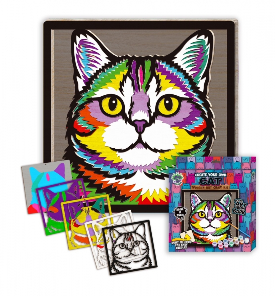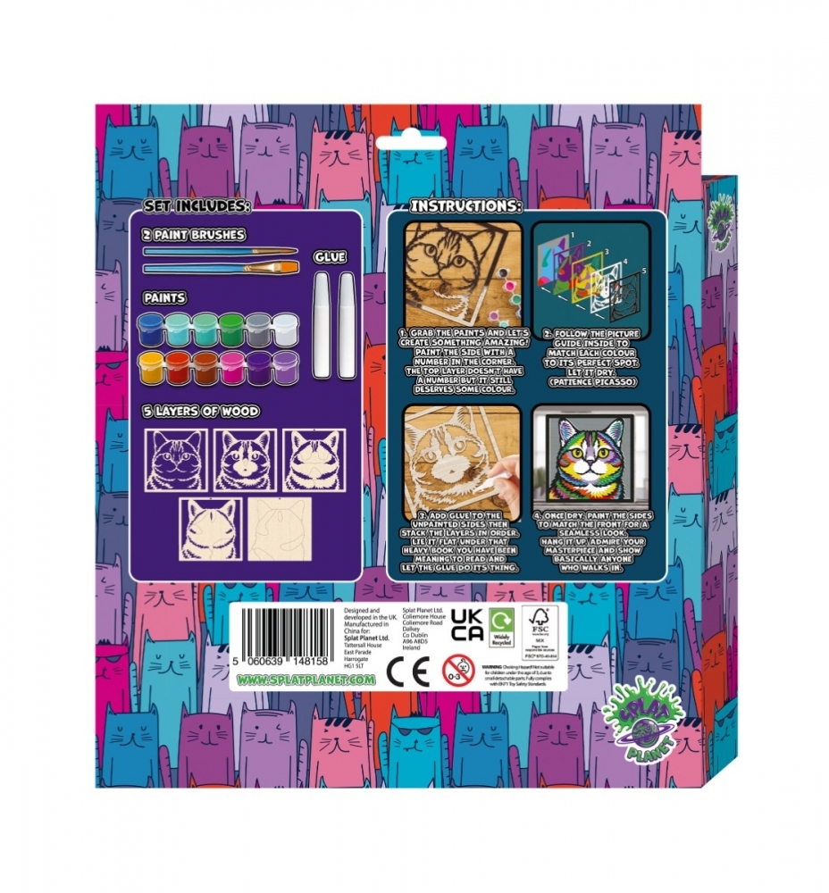 Standardowy rozmiar to 25 cm x 25 cm. Zestaw zawiera 2 pędzle, farby, 5 drewnianych warstw oraz klej.