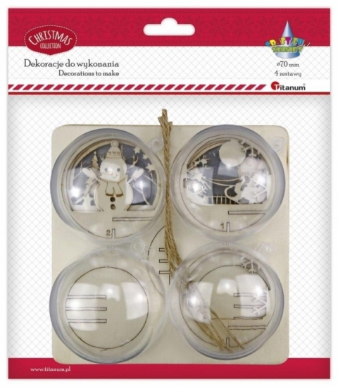 Zestaw do złożenia bombka akrylowa O70mm z drewnianym dekorem do umieszczenia wewnątrz 4 zestawy