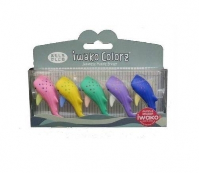 Gumki do mazania w kształcie rekinów, różne kolory. 5szt w zestawie.
